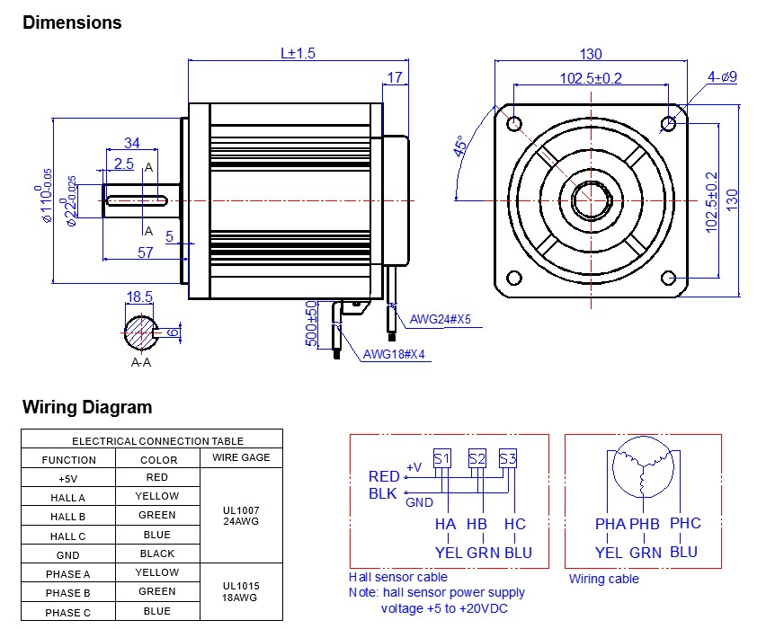 Brushless DC Motor General SpecificationWinding Type StarHall effect angle 120° Electrical angle Insulation Class BAmbient Temperature -20ºC~+50ºCInsulation Resistance 100MΩ Min.......